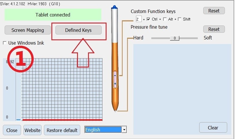 Mở giao diện cài đặt trình điều khiển, chọn các phím được xác định (Defined Keys)