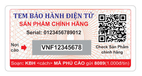 Sản phẩm chính hãng được bảo hành online trên toàn quốc 1 năm. Khách hàng nhẵn tin kích hoạt bảo hành theo cú pháp: KBH<cách> MÃ PHỦ CÀO gửi 8089. Công ty sẽ nhắn tin thông báo Thời gian bảo hành và ngày được bảo hành.