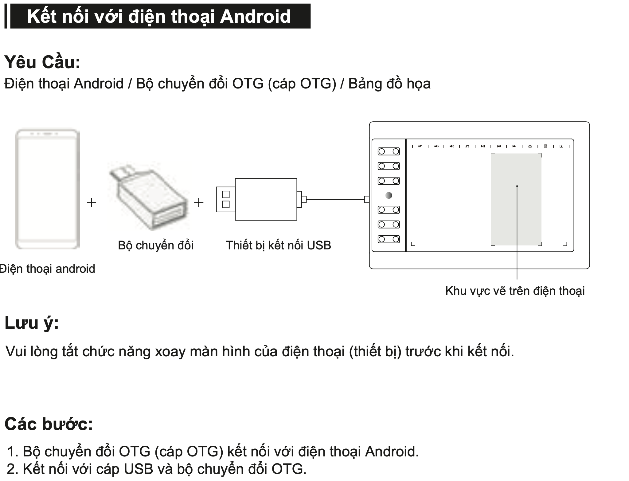 Bảng điện tử thường được xử dụng với hệ điều hành windown và MAC. Ngoài ra bảng còn được xử dụng với điện thoại Android. Khi xử dụng bảng sẽ được kết nối với điện thoại qua cộng sạc micro, để kết nói và xử dụng được Anh chị cần một số lưu ý.