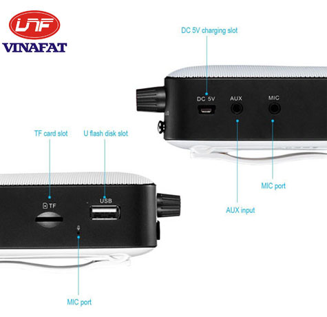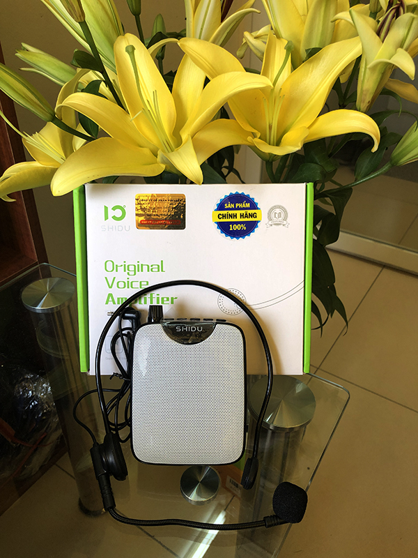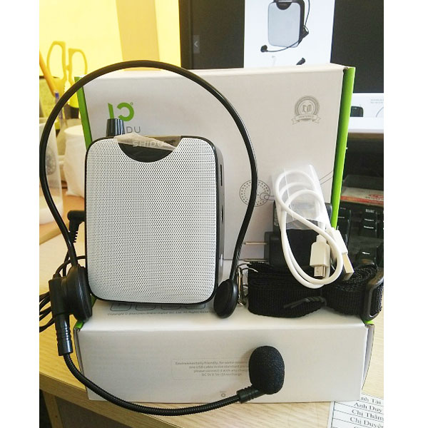 - Phụ kiện kèm theo : 01 Micro có dây đeo đầu , dây đeo máy , sạc pin và dây sạc .